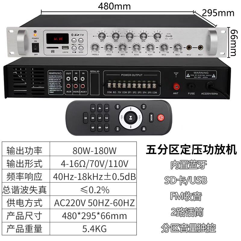 带蓝牙/U盘/SD卡/FM收音/5分区音量独立控制功放